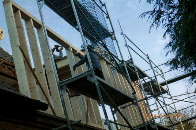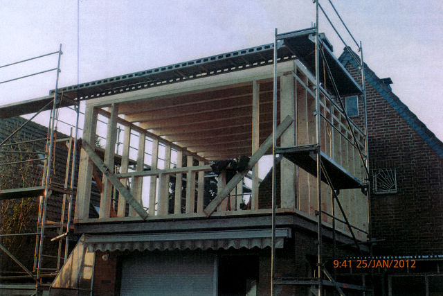 Aufstockung in HolzrahmenbauweiseRahmenbau mit Holzbalkendecke