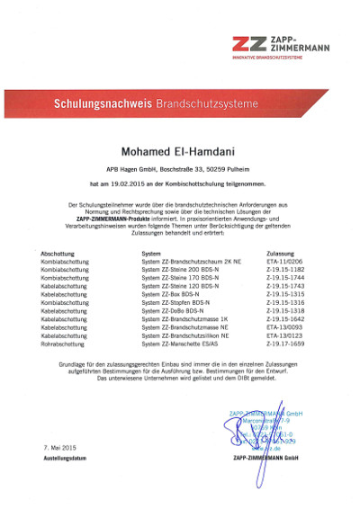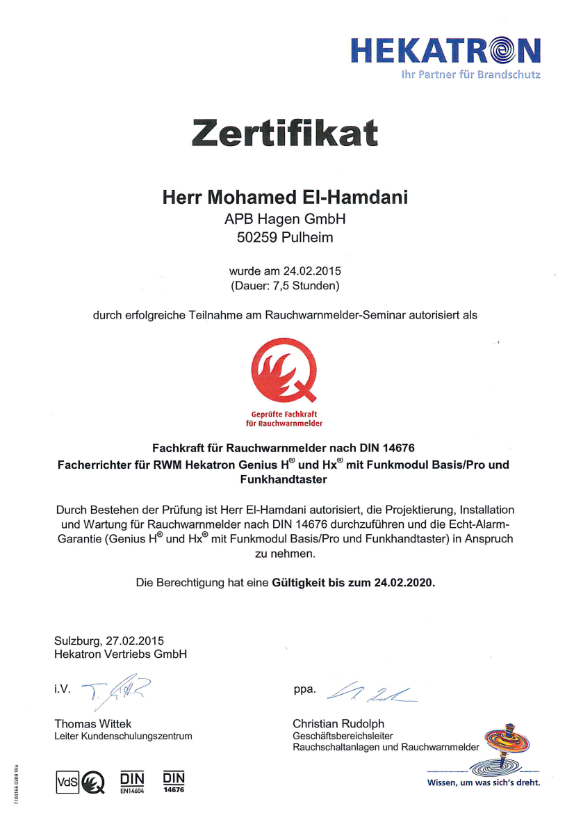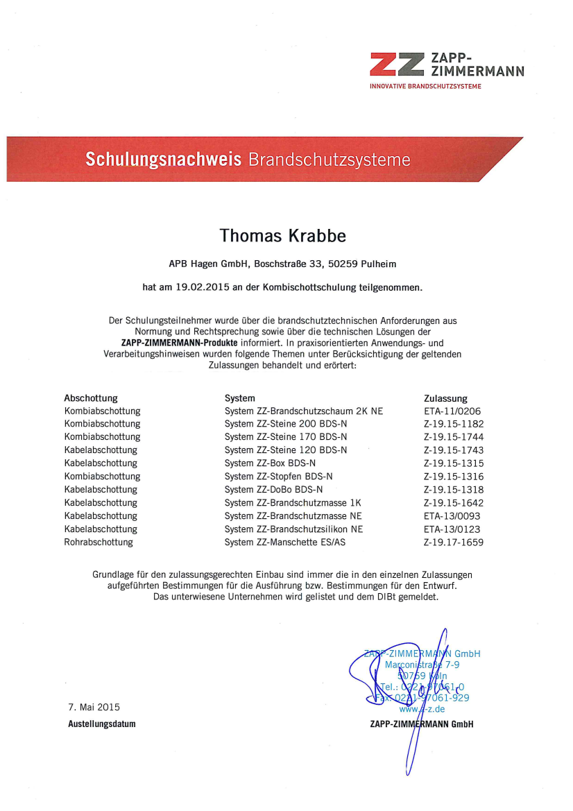 Nachstehend finden Sie unsere Zertifizierungen nach DIN EN 14637 und DIN 14677